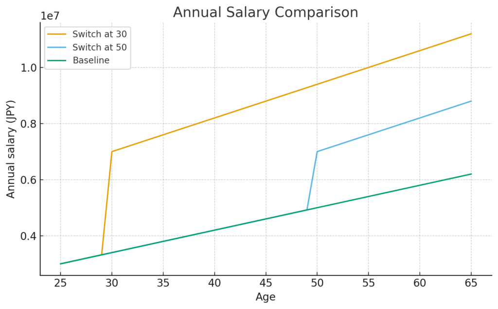 長い目で見ても早めに年収を上げると生涯賃金に大きなインパクトが出ます。